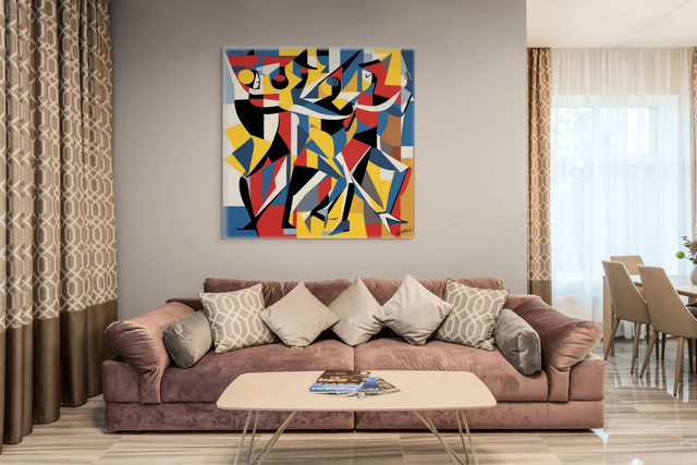 Abstract Art, 'Dancers 7', Digital Art, Wall Art, Large Canvas Art, Statement Art, Picasso, Cubism inspired.