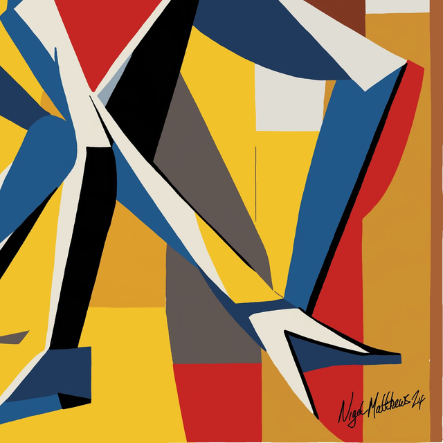 Unique abstract artwork which is part of my 'Dancers' series. This artwork is inspired by a mix of abstract, cubist and bauhaus styles and has been digitally hand drawn on an iPad Pro using sketchbook pro software.