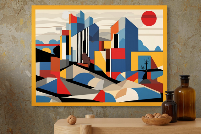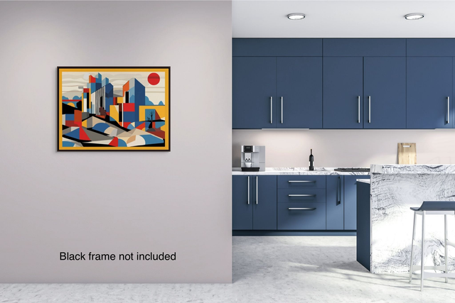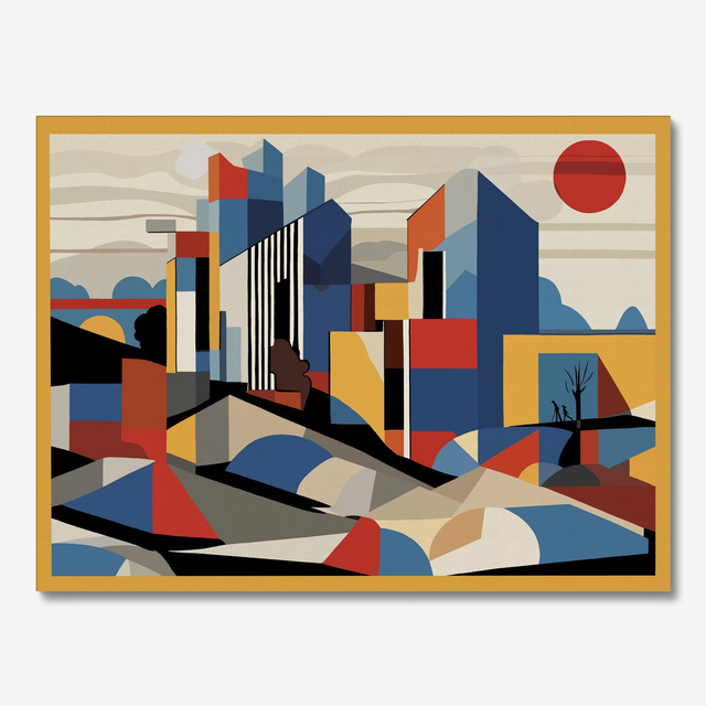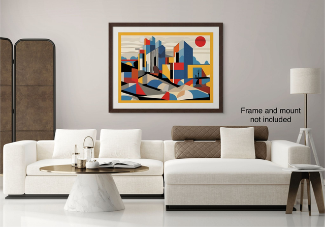 Abstract Landscape, Bauhaus Colours, Fine Art Giclee Print, Retro Art, Digitally hand drawn artwork. Professionally Printed in UK