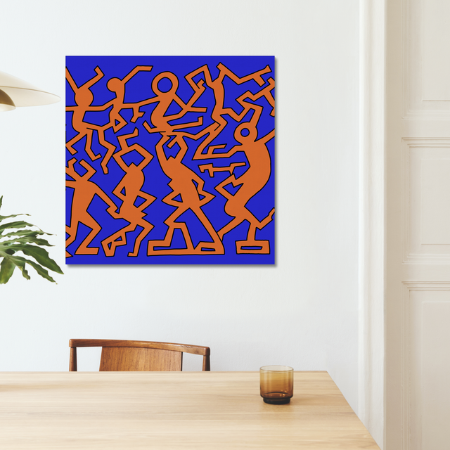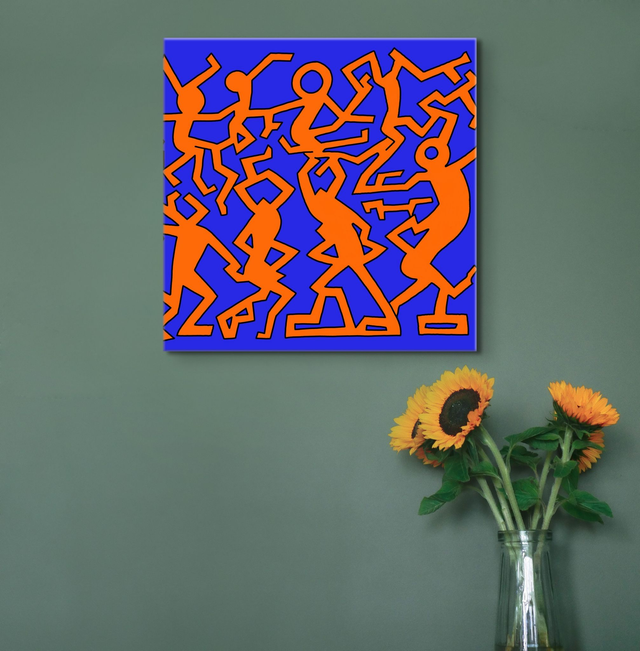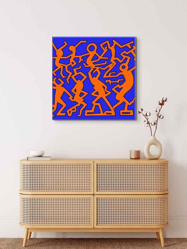 Abstract Pop Art Keith Haring inspired 'dancers 2', Stretched Canvas, Colourful, Wall art