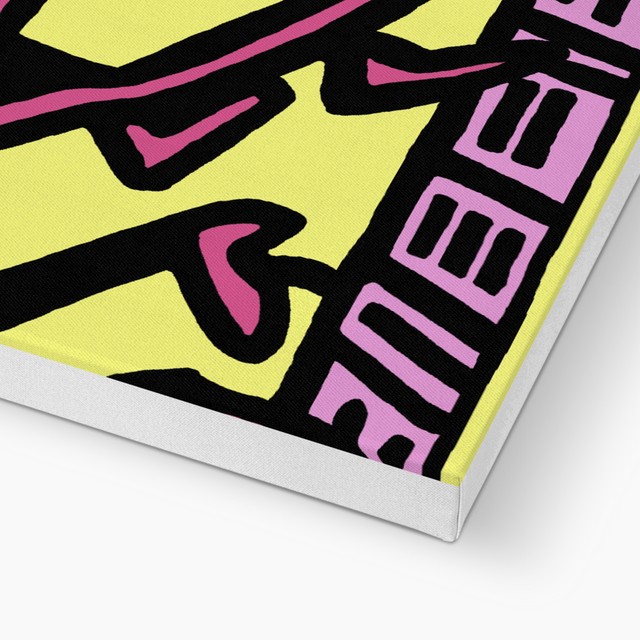 Abstract Pop art inspired by the works of Keith Haring. Digitally hand drawn on an iPad and then professionally printed. Available as a high quality stretched canvas, ready to hang and available in four sizes.