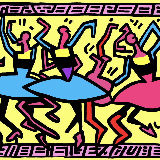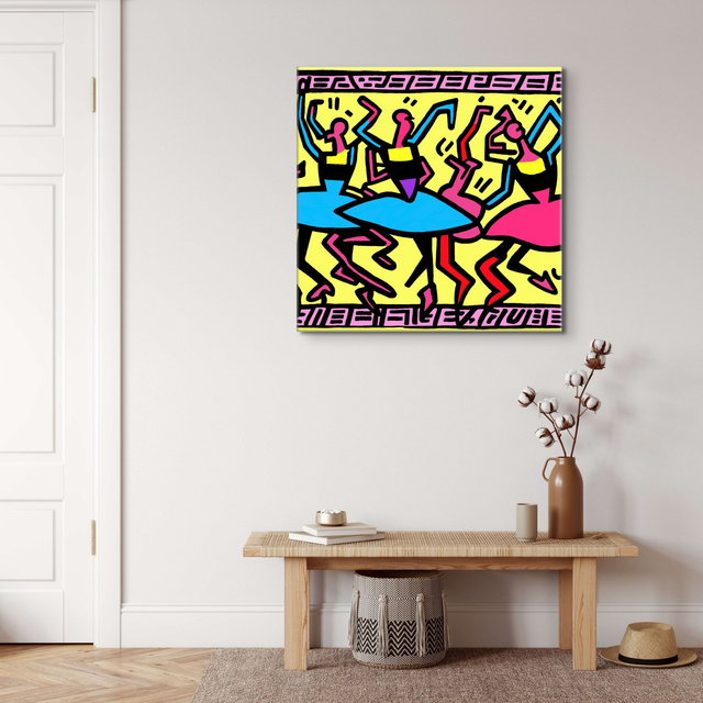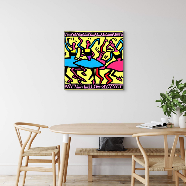 Abstract Pop Art Keith Haring inspired 'dancers 3', Stretched Canvas, Colourful, Wall art