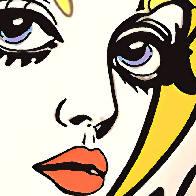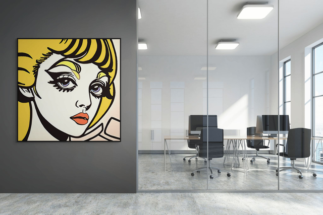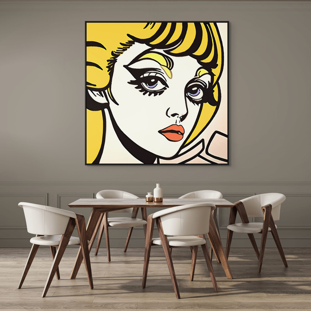 Comic Girl, Roy Liechtenstein inspired, Float Framed, Canvas Wall Art, Square Wall Decor, Commercial Spaces Art.
