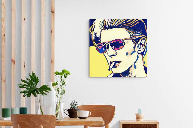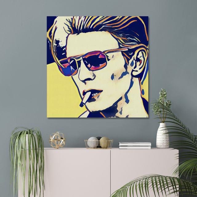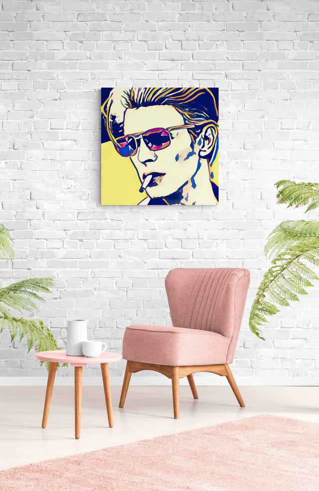 Warhol inspired digital artwork of David Bowie now available as a stretched canvas, ready to hang and available in six sizes.