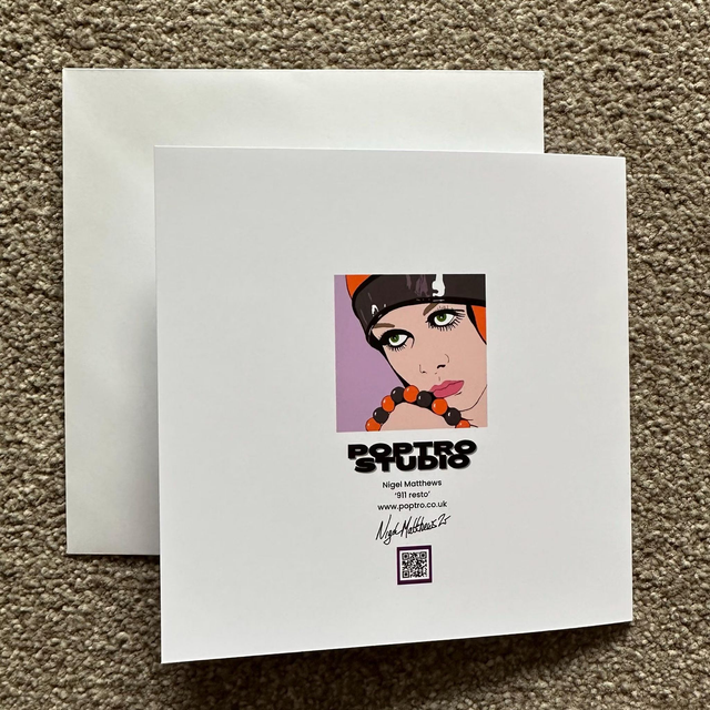 The image is printed on 300gsm card with a smooth gloss finish. Each card comes with a white envelope and wrapped in an OPP sleeve which is fully recyclable.