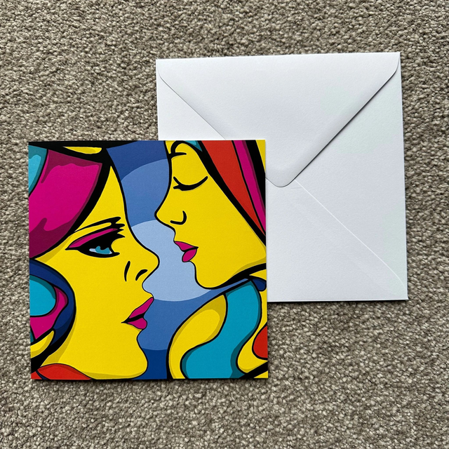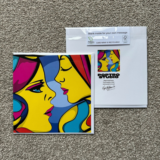 Psychedelic Girls - Single Square Pop Art Greeting Card, White Envelope, Blank Inside, Recyclable Wrap, Professionally Printed