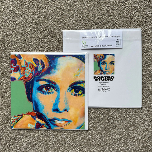 Twiggy - Single Square Pop Art Greeting Card, White Envelope, Blank Inside, Recyclable Wrap, Professionally Printed