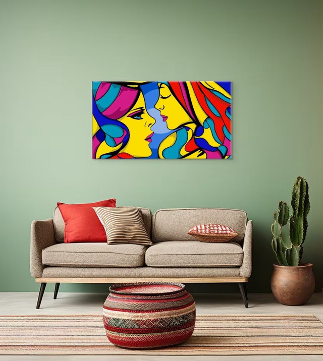 Unique, Wall Art Canvas, 'Psychedelic Girls', Digitally Hand Drawn, Wall Decor, Influenced by Milton Glaser.